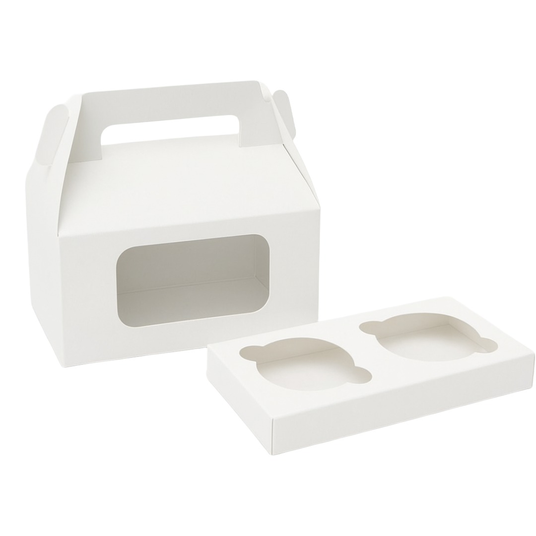 For small orders and duo sets, our elegant 2-Piece White Cupcake Box offers a premium and professional packaging solution. This box is the perfect choice for cafes and small businesses that need to present two cupcakes in a clean, stylish manner, making every order feel special.