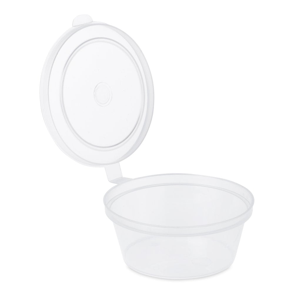60 ML Round Hinge Container is Transparent & made up of Polypropylene material comes with attached Lid. It is useful to pack for salads, chutney, Raita, sweet, yogurt, pickles. Leakproof, Microwave and Freezer safe. Ideal for Food sampling, restaurant take out services, Cloud kitchens, Home chefs to send their food accompaniments. Easy stackable and space saving & easily fits with all the food containers.
