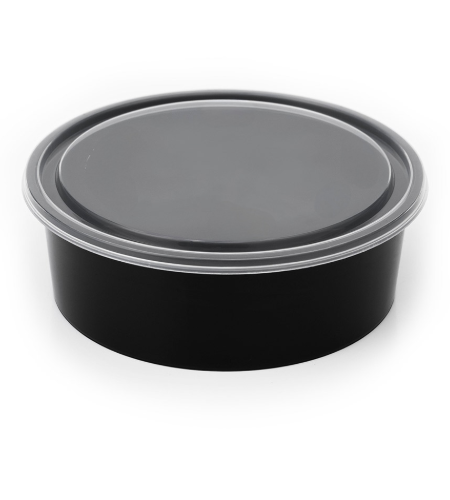 (Top Dia) 4.5 x (Bottom Dia) 3.5 X (Height) 3 Inches. Black Base round 600 ml container with Modular round seal Airtight lid. Convenient for transit of Half portion Gravy, Biryani, Noodles, Thukpas etc. Micro oven safe Polypropylene material Food safe plastic Which keeps food healthy for long. Easy to store as the product is Stackable, saves space so kitchen looks organized and attractive virgin plastic excellent finish top lids allows to see contents and check food quantities