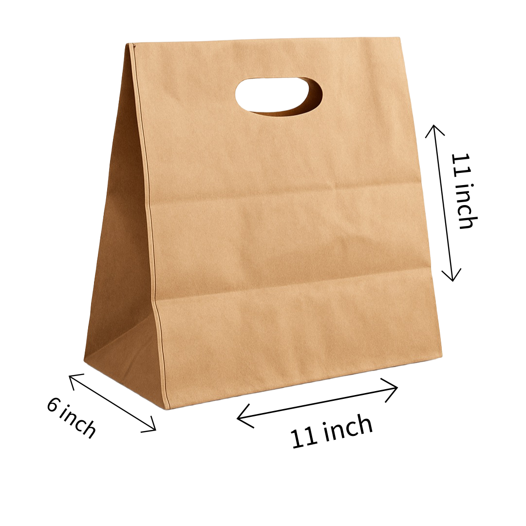 Discover the perfect blend of functionality and sustainability with Restokart's Brown Kraft Paper Bags with Die-Cut Handle. Measuring 11x6x11 inches, these medium-sized paper bags are an eco-friendly and stylish choice for businesses and individuals across India. Crafted from durable, biodegradable brown kraft paper, they offer reliable strength for a variety of items while promoting your commitment to the environment. The integrated die-cut handle provides a sleek, comfortable, and handle-less appearance, ideal for a professional presentation.