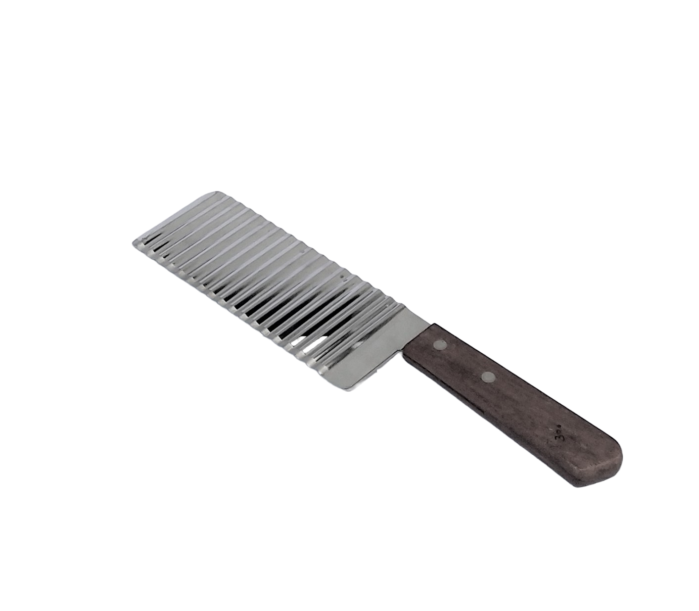 Crinkle Cut knife is partly wooden and stainless steel. It is mostly used in cutting Vegetable, Salad Chopping. slicing Tool for French Fry cut. not to be used in dishwasher. easy to use having good advantages. Unique design and good to create fun in kitchen. It makes your cooking pattern even more creative. easy to wash and store. Please beware of sharp edges.